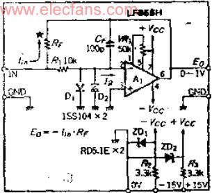 電流-電壓轉換原理是,在OP放大器的輸出輸入端加入反饋電阻RF,就可以轉換成電壓EO(EO=IF*RF)。RF可由RF=EO/I1N的公式求出。假定輸出電壓1V,滿量程輸入電流IIN=1UA,則RF=1*10的6次方歐。