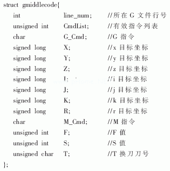 其中,CurrentGMidCode是預(yù)定義的結(jié)構(gòu)體變量,用于保存每行G代碼提取出來的指令及其操作數(shù),結(jié)構(gòu)如下: