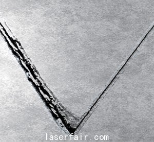 ![]() ![]() 由圓偏振光制作的切割痕跡十分清晰。 ![]() 由線(xiàn)性偏振光制作的切割痕跡呈鋸齒形。 |