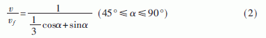 設(shè)脈沖F單獨(dú)驅(qū)動(dòng)單軸運(yùn)動(dòng)的速度為Vf,合成速度為V??梢援嫵鯲/Vf隨α的變化的曲線圖,如圖7(a)所示。由圖可知,當(dāng)角度α=45°時(shí),運(yùn)動(dòng)速度最快。