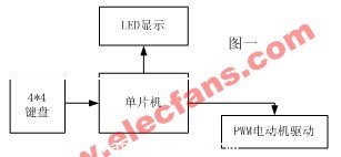 本系統(tǒng)編程部分工作采用KELI-C51語(yǔ)言完成,采用模塊化的設(shè)計(jì)方法,與各子程序做為實(shí)現(xiàn)各部分功能和過(guò)程的入口,完成鍵盤(pán)輸入、按鍵識(shí)別和功能、PWM脈寬控制和LED顯示等部分的設(shè)計(jì)。