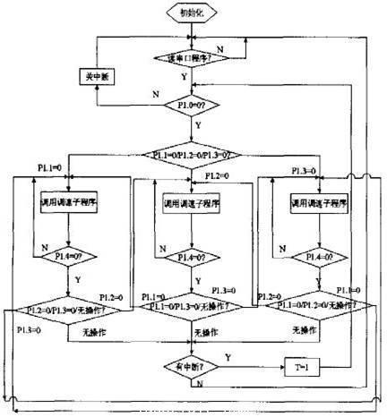 本例中。為計算方便,把各離散點的速度所需的裝載值用公式轉(zhuǎn)化為各自所需的定時時間固化在系統(tǒng)的ROM 中,這里用TH0=(65536-time)/256,TL0=(65536-time)%256來計算裝載值,time表示各階梯所需定時時間。系統(tǒng)在運行中用查表法查出所需的時間,從而大幅度減少占用CPU的時間,提高系統(tǒng)的相應(yīng)速度。因此。該程序主要由控制主程序、加減速子程序組成,主程序框圖如圖4所示。#p#分頁標題#e#