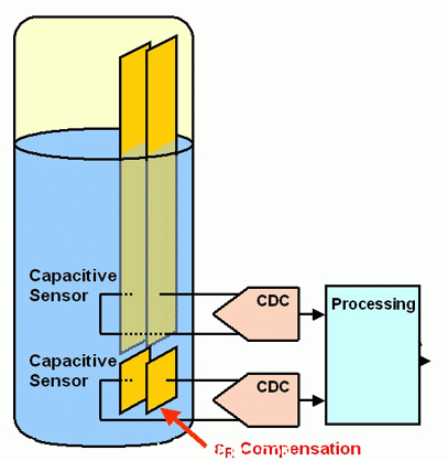 濕度傳感器是電介質(zhì)傳感器的經(jīng)典例子,使用濕度敏感聚合物層作為電介質(zhì)。隨著濕度的增加,堆積越來越多的水分子,因此εr增大。傳感器檢測液體(如油或燃料)的純度,實(shí)質(zhì)由兩塊固定的導(dǎo)板構(gòu)成,液體自身形成電介質(zhì)。必需的液體特性根據(jù)經(jīng)驗(yàn)來確定(例如:油或燃料中增加的水份)。溫度起到?jīng)Q定性的作用,也必須可靠地確定。測量電介質(zhì)變化的簡單的接近傳感器,通常需要最復(fù)雜的測量電子學(xué)。