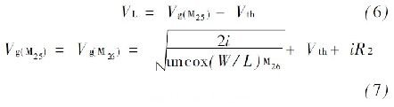 式中: K = (W/ L ) M4 / ( W/ L ) M3 ,通過式(5) 可以發(fā)現(xiàn),偏置電流I M1 , I M2與輸入電源無關(guān)。