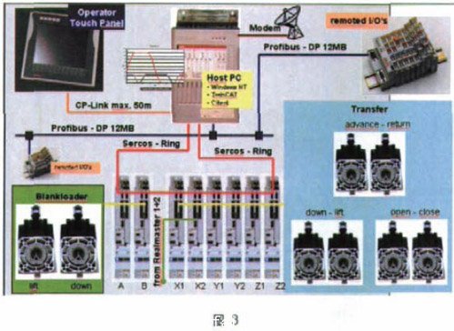 從電氣控制上講,舒勒萬(wàn)家頓和古德都是使用帶有同步控制功能的工控機(jī)作為控制核心,使用力士樂的伺服驅(qū)動(dòng)器作為驅(qū)動(dòng)元件,使用力士樂的伺服電動(dòng)機(jī)作為執(zhí)行元件實(shí)現(xiàn)運(yùn)動(dòng)控制的。而壓機(jī)是如何作為主軸的呢?這信號(hào)來(lái)源于安裝在壓機(jī)凸輪上的編碼器,在整個(gè)同步控制中這個(gè)編碼器就作為主軸,其他從軸隨這個(gè)主軸按照編輯的同步曲線運(yùn)動(dòng)。