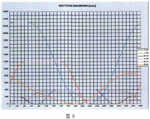 圖5~圖7所示為通過(guò)軟件制作的運(yùn)動(dòng)曲線(xiàn),曲線(xiàn)中的橫坐標(biāo)為主軸角度,縱坐標(biāo)為從軸位置,通過(guò)不同的同步曲線(xiàn)實(shí)現(xiàn)了送料機(jī)構(gòu)各個(gè)運(yùn)動(dòng)方向與壓力機(jī)的可編程運(yùn)動(dòng)控制。圖5為一條從軸不跟隨主軸運(yùn)動(dòng)的同步曲線(xiàn),圖6為一條從軸跟隨主軸做先加速后勻速再減速的五次方運(yùn)動(dòng)曲線(xiàn),圖5與圖6的可編程組合實(shí)現(xiàn)了圖7所示完整的同步運(yùn)動(dòng)。這條曲線(xiàn)就是#p#分頁(yè)標(biāo)題#e#VX,VY等與M之間同步運(yùn)動(dòng)所需要的曲線(xiàn),為X、V Y、V Z、V A、V B分別編制的同步曲線(xiàn)如圖8所示。