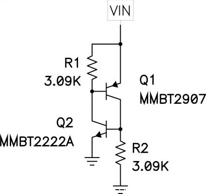 這種電路的一個(gè)有趣特性是,您可以通過選擇電阻器值建立 SCR 的保持電流。為了讓鎖存電路在觸發(fā)以后仍然保持開啟,兩個(gè)基極發(fā)射極結(jié)點(diǎn)必須要有足夠的電壓(~0.7 V)讓其保持開啟狀態(tài)。這就意味著,如果向它提供的電流為 Vbe / R1 + Vbe / R2以上,則電路鎖存。如果鎖存電路連接一個(gè)小電流的電容器,則鎖存電路對(duì)該電容器放電。一旦電路的電流減少至保持電流以下,它便關(guān)閉。