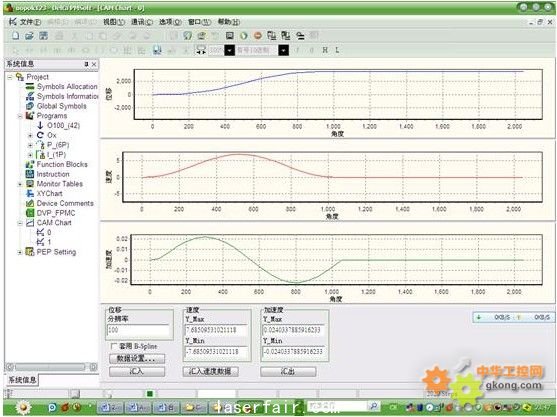 圖4中顯示的位置速度及加速度,可以看出均具有柔和的加減速。這在該行業(yè)是必須具有的,因?yàn)楸旧黹g隙送紙要求高度啟停,如果加速曲線不平滑柔和的話,會(huì)對(duì)機(jī)械沖擊很大,速度提不高造成伺服報(bào)警。
