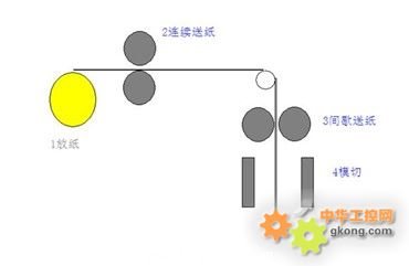 模切機(jī)控制難點(diǎn)主要有兩點(diǎn):一是要求送模軸與模切軸追隨性好,不能存在相位路后等問(wèn)題;二是要保證送模軸(送模軸有兩個(gè),一為間歇送紙,一為連續(xù)送紙)主軸之間沒(méi)有相位路后。傳統(tǒng)的模切設(shè)備是以機(jī)械為主,弊端是模切不同尺寸的托盤時(shí),需要更換機(jī)械凸輪和機(jī)械齒輪。而臺(tái)達(dá)20PM運(yùn)動(dòng)控制器具有電子凸輪與電子齒輪功能,可以完全勝任模切控制的要點(diǎn)。