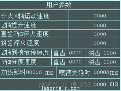 (2) 淬火輔助工藝參數(shù)的處理。在淬火零件加工過(guò)程中,都會(huì)涉及到一些淬火機(jī)床加工輔助工藝參數(shù),如淬火進(jìn)給速度f(wàn),延時(shí)時(shí)間x等,這些參數(shù)即可以通過(guò)lcd規(guī)劃的變量表格輸入,也可以通過(guò)具體數(shù)值直接給定,如上例說(shuō)明描述。工藝參數(shù)界面規(guī)劃如下: