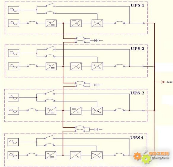 3)電池采用多臺UPS共用的方式,以減低電池成本,提高電池利用率。