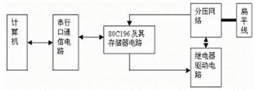 其中,主控電路包括:80c196擴展電路,串行通信電路,分壓網(wǎng)絡(luò)和其它輔助電路。單片機通過串行通信接收計算機的命令然后進行指定的操作:測量傳感器和傳送測量結(jié)果。主控電路結(jié)構(gòu)如圖3所示: