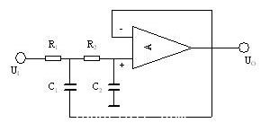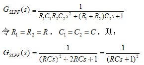 為了消除數(shù)字系統(tǒng)頻譜混疊,濾除高頻噪聲對控制系統(tǒng)的影響,故在數(shù)控系統(tǒng)的傳感器信號前端設(shè)計了二階低通抗混疊濾波器。抗混疊濾波器采用壓控電壓源二階低通濾波電路如圖5所示,其傳遞函數(shù)為: