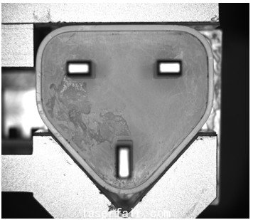 在自動化的生產(chǎn)線上,有很多情況下,產(chǎn)品是無規(guī)則的排列,為了提高生產(chǎn)效率就要求機器人準確迅速的找到產(chǎn)品的位置,從而進行準確的抓取,進行下一步工位的操作。如圖所示為一個機械加工的零部件,從傳送帶上自動的輸送到機械手的抓取范圍內(nèi)。通過機器視覺自動捕捉到零部件的中心點,發(fā)送給機器人的控制系統(tǒng),由于該產(chǎn)品是一個中心對稱的產(chǎn)品,因此只需要定位該產(chǎn)品的中心位置即可。