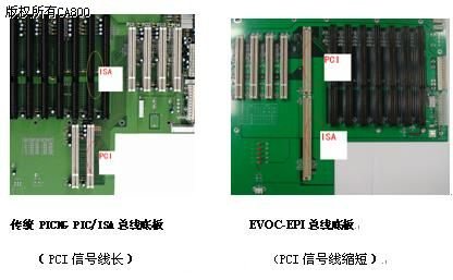5.EVOC-EPI總線在信號分布上優(yōu)先考慮高速信號的走線。縮短了底板上PCI信號從總線擴(kuò)展槽到子卡的走線長度,減少了傳輸線上分布電容對信號完整性帶來的影響,PCI信號質(zhì)量得到較大的改善,提高了系統(tǒng)的可靠性。(底板圖 四)
