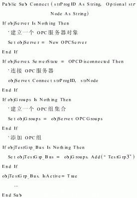OPC數(shù)據(jù)訪問(wèn)方法主要有同步訪問(wèn)、異步訪問(wèn)和訂閱方式數(shù)據(jù)采集。對(duì)于異步訪問(wèn),OPC服務(wù)器接到OPC應(yīng)用程序要求后,幾乎立即將方法還回,OPC應(yīng)用程序不必處于等待狀態(tài),可以處理其他任務(wù)。當(dāng)OPC服務(wù)器完成數(shù)據(jù)訪問(wèn)時(shí),觸發(fā)OPC應(yīng)用程序的異步訪問(wèn)完成事件,OPC應(yīng)用程序在的VB 事件處理程序中接受從OPC服務(wù)器傳輸過(guò)來(lái)的數(shù)據(jù);對(duì)于訂閱方式數(shù)據(jù)采集,OPC服務(wù)器也是通過(guò)觸發(fā)事件方式傳輸數(shù)據(jù)到OPC應(yīng)用程序。
