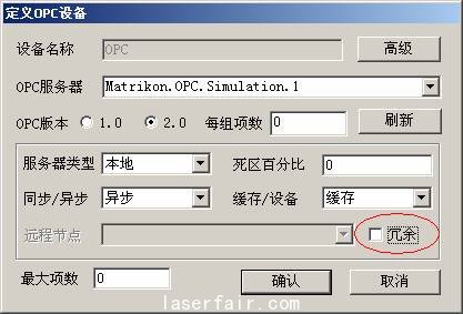 當(dāng)進(jìn)行OPC驅(qū)動(dòng)設(shè)置時(shí),在進(jìn)入OPC設(shè)備定義對話框后單擊“冗余”選項(xiàng),會(huì)彈出冗余設(shè)置對話框,如下所示: