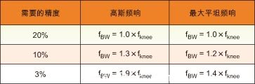 表1:根據(jù)需要的精度和示波器頻率響應(yīng)的類(lèi)型計(jì)算示波器所需帶寬的系數(shù)