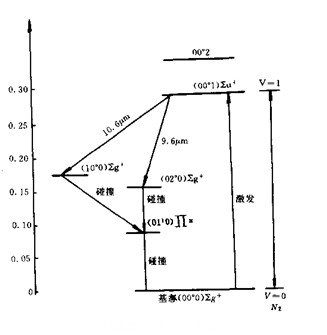 圖(2 與產(chǎn)生激光有關(guān)的CO2分子能級圖