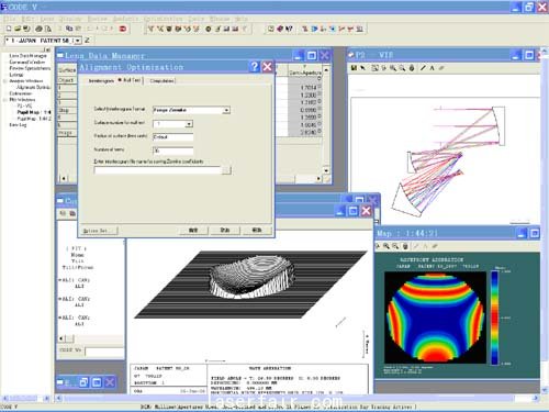 CODE V擁有世界上最先進(jìn)、最完整的公差分析子程序,可以針對均方根波像差、衍射傳函、主光線畸變或用戶定義的評價(jià)指標(biāo)進(jìn)行公差分配。在公差計(jì)算中可以使用像面位移、傾斜、墊圈厚度等各種補(bǔ)償參教來模擬系統(tǒng)裝校過程中的調(diào)整。同時(shí),提供了與ZygoWyko干涉儀的接口。如果與上述干涉儀聯(lián)用,可以實(shí)現(xiàn)對復(fù)雜光學(xué)系統(tǒng)的計(jì)算機(jī)輔助實(shí)時(shí)裝調(diào)。其它與系統(tǒng)制造有關(guān)的功能包括自動對樣板、國際標(biāo)準(zhǔn)和中國國標(biāo)加工圖紙繪制、成本估算等。上圖為光學(xué)系統(tǒng)的計(jì)算機(jī)輔助實(shí)時(shí)裝調(diào)。