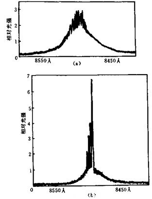 圖(3 GaAs激光器的發(fā)射光譜 (a) 低于閾值 (b) 高于閾值