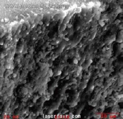 有時也會用到盲孔。這種要求實現(xiàn)一個平滑的內(nèi)部輪廓。圖5是用20W脈沖激光器在硅片上鉆出的一個盲孔。