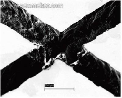 圖7顯示了用25kHz、WF0和速度500mm/s的激光器在硅上劃線。劃痕已經(jīng)被超聲波清理過。