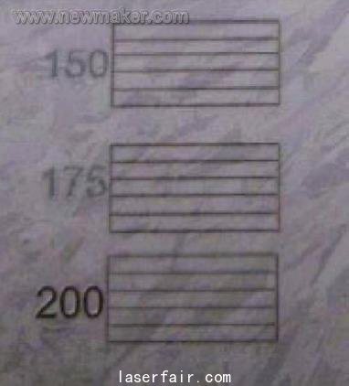 圖6:用20W脈沖激光器在150mm/s、175mm/s和200mm/s的不同速度下進(jìn)行硅劃線。