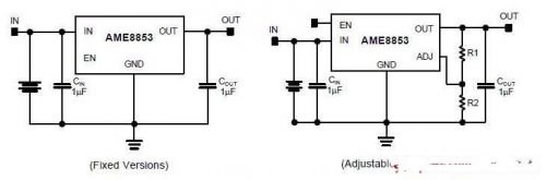 安茂微(AME)的AME8853,提供300mA的輸出電流,提供SC70-5、SC70-4、SOT25、TSOT25A、SOT25、SOT23包裝,具有300mV低壓差、并可撘配低ESR之陶瓷電容器。
