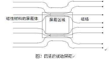 磁場(chǎng)屏蔽主要是依賴高導(dǎo)磁材料所具有的低磁阻對(duì)磁通起到分路的作用,使得屏蔽體內(nèi)部的磁場(chǎng)大大減弱,圖3說(shuō)明了這一原理。