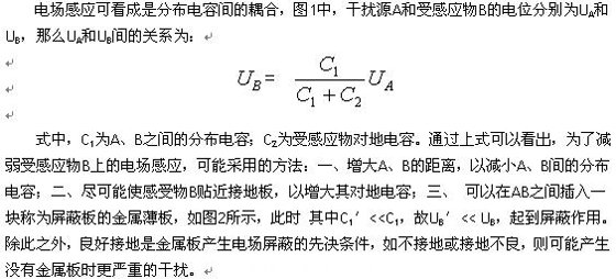 當(dāng)噪聲源是高電壓、小電流時(shí),其輻射場(chǎng)主要表現(xiàn)為電場(chǎng),電場(chǎng)屏蔽是抑制噪聲源和敏感設(shè)備之間由于存在電場(chǎng)耦合而產(chǎn)生的干擾。
