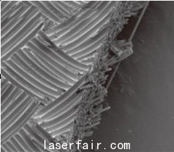 圖3顯示的是機(jī)械切斷產(chǎn)生的邊緣質(zhì)量同光纖激光切割相比較的情況。在機(jī)械切斷的樣本上,可以看到復(fù)合材料大部分突出纖維,而在激光切割的樣本上可以看到光滑的邊緣。
