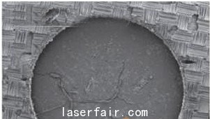 與使用Nd:YAG激光器鉆出的孔相比,激光螺旋狀鉆孔的熱損害要少一些,表面的邊緣質(zhì)量看上去好一些。頂部表面的回?zé)恐挥袔资⒚住?/p>