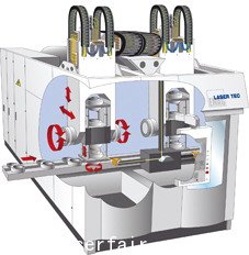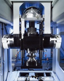 一個主軸在焊接時另一個主軸將焊接好的組件下料,同時為下一個焊接上料并夾緊工件。焊接頭在兩個工位切換,從而達到激光的最佳利用率和設(shè)備的高效率。