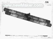 x梁的模擬結(jié)果如圖2所示,通過(guò)模擬的結(jié)果我們可以看出,在受力方向上,最大的應(yīng)變是0.6×10-5m,這說(shuō)明我們的變形是在允許的范圍之內(nèi)的。