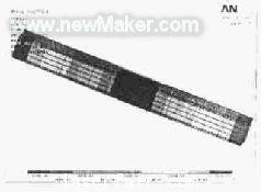 在圖中,x方向跟x梁的方向是一致的,y方向即是y梁的方向,z方向是垂直向下的。在圖4中,我們可以看到,在各個(gè)支撐板上,都承受了很大的應(yīng)力,因而變形量也很大。而圖5則說(shuō)明由于z梁的作用力,使得固定z梁的板發(fā)生了變形,在模擬中,我們可以得到最大變形是0.2×10-8m,這樣就保證了z梁的垂直度。圖6是z梁支架在垂直方向即z方向上的變形,通過(guò)應(yīng)變的分布可以看出,z梁固定板在z方向上的變形很小,而且比較相近,大約在0.2~0.7×10-9m左右,對(duì)垂直方向的尺寸精度影響很小。圖7、8、9則是從應(yīng)力方面來(lái)說(shuō)明這個(gè)問(wèn)題。 #p#分頁(yè)標(biāo)題#e#