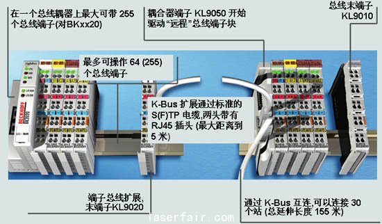 連接 64 個總線端子模塊 ( 使用 K-Bus 擴(kuò)展接口 KL9020, KL9050 可連接255個 )