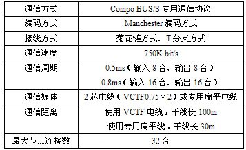 配線簡(jiǎn)單:主單元和從站單元間、從單元和從單元間可用4線制電纜連接,其中2根為信號(hào)線,2根為電源線,從而大幅度減少了配線。Compo BUS/S通信參數(shù)如表4所示。