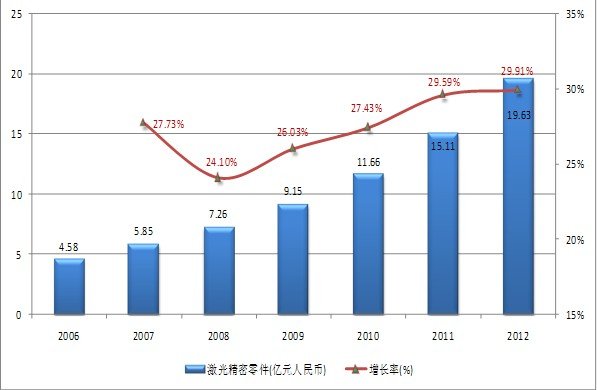 中國應(yīng)用激光技術(shù)加工的精密零件市場容量統(tǒng)計與預(yù)測