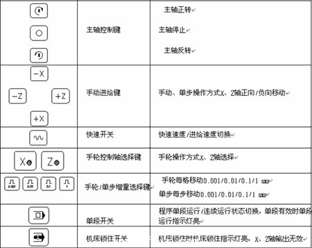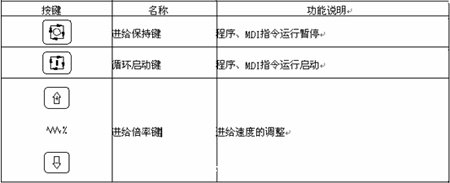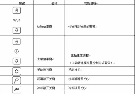其機(jī)床面板上面的按鍵的含義如表1.5-a所示: