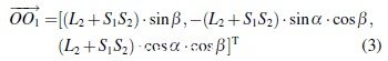 根據(jù)求解得到的α、β 和L2,將Ts2O TO1O求解出來.得到S2和O1在固定參考坐標(biāo)系O-XYZ 中的坐標(biāo),則得到下式: