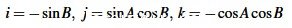 以UG的五軸雙擺頭結(jié)構(gòu)X、Y 、Z、A、B為例說(shuō)明轉(zhuǎn)換模塊的轉(zhuǎn)換過(guò)程.首先,為簡(jiǎn)化轉(zhuǎn)換過(guò)程,將第4、第5軸偏置設(shè)為0,這樣UG在轉(zhuǎn)換時(shí)就不考慮刀長(zhǎng),那么UG 輸出代碼中的X、Y 、Z與并聯(lián)結(jié)構(gòu)的需求一致,不需要再作轉(zhuǎn)換.我們只需要對(duì)刀軸姿態(tài)進(jìn)行轉(zhuǎn)換:設(shè)單位刀軸矢量在X 軸的投影為I、在Y軸的投影為J、在Z 軸的投影為K,A為主擺角,B為副擺角,刀具軸在Z軸上,通過(guò)數(shù)學(xué)推導(dǎo)可得出反解模塊的刀軸矢量和A、B的關(guān)系如下(式中i、j、k依次為矢量I、J、K的模,A、B依次為轉(zhuǎn)角A、B的角度值):