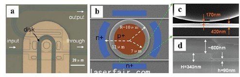 圖1 基于微盤諧振器的雙帶光學濾波器的掃描電鏡照片