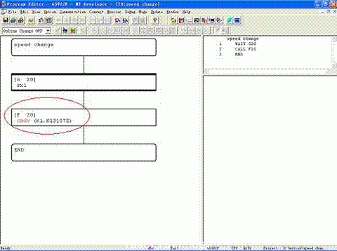 共有兩個SFC程序,main1為定位主程序,speed change為改變速度的程序