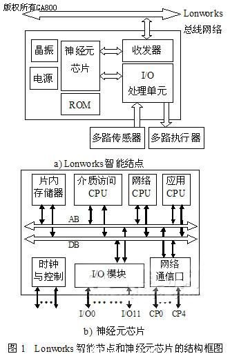 智能結(jié)點及其神經(jīng)元芯片是Lonworks總線的基礎(chǔ)部分,它們直接安裝于生產(chǎn)現(xiàn)場,采集工業(yè)現(xiàn)場信號并輸出控制量,同時通過網(wǎng)絡(luò)上傳和接收各種網(wǎng)絡(luò)數(shù)據(jù),其結(jié)構(gòu)如圖1所示。#p#分頁標(biāo)題#e#
