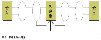 為了防止或減少外部配線的干擾,交流輸入、輸出信號與直流輸入、輸出應(yīng)分別使用各自的電纜;對于集成電路或晶體管設(shè)備的輸入、輸出信號線、必須使用屏蔽電纜,屏蔽電纜在輸入、輸出側(cè)懸空,而在控制側(cè)接地,其處理方式如圖2。