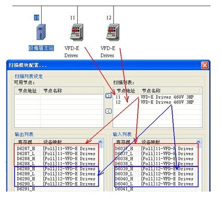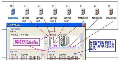 用鼠標(biāo)左鍵雙擊DNET Scanner主站模塊圖標(biāo),可以進(jìn)入主站模塊的“掃描模塊配置”工具,設(shè)定從站的掃描列表,以及寄存器的對(duì)應(yīng)設(shè)備(地址)映像表: