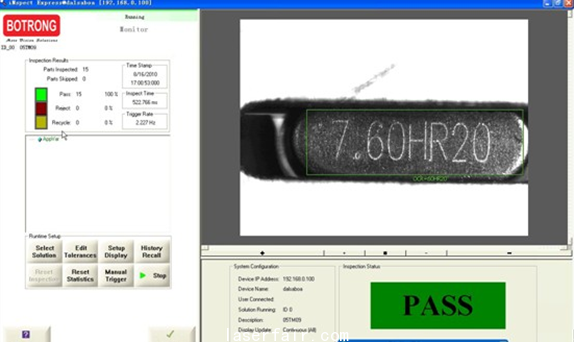 本案例中上海波創(chuàng)電氣有限公司使用200萬像素ccd相機(jī),產(chǎn)品檢測速度7個/秒。該公司內(nèi)存條主要出口國外,主要檢測標(biāo)簽上的字符信息是否完整,字符有無缺劃,位置上有無偏動。