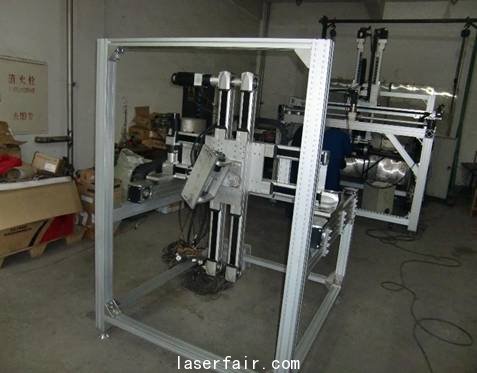 直角坐標(biāo)機(jī)器人的三個(gè)直線運(yùn)動(dòng)軸除了采用防塵防水的鋼帶防護(hù),里面的全部零件都不怕水,能保證機(jī)器人長(zhǎng)期工作。圖3中的機(jī)器人是萊茵機(jī)電三年前交付給用戶,運(yùn)回維護(hù)保養(yǎng)的五軸聯(lián)動(dòng)機(jī)器人。