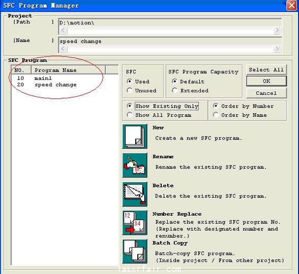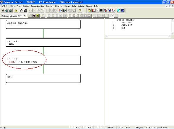 共有兩個(gè)SFC程序,main1為定位主程序,speed change為改變速度的程序